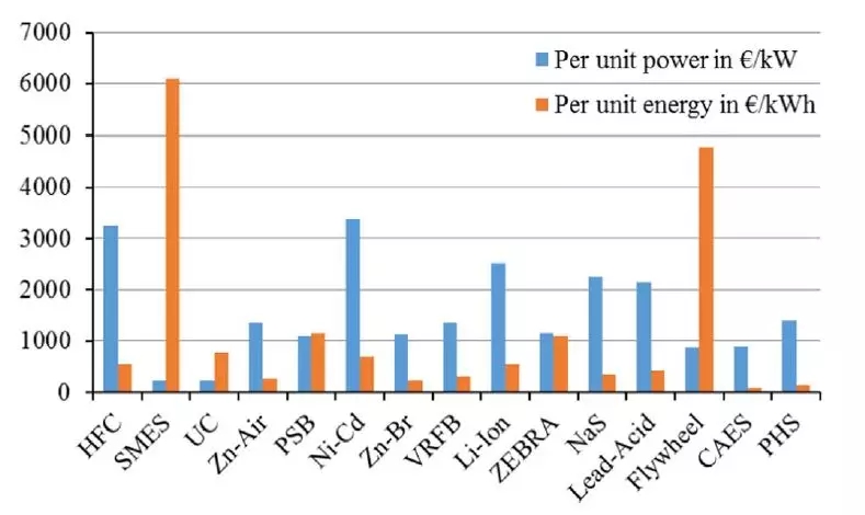 圖21.用于大規(guī)模儲能的ESS總資本成本[69]。