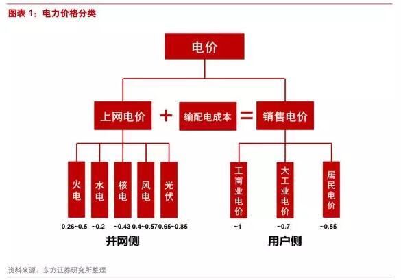 我國的銷售電價分為三類:工商業(yè)電價,一般在 1 元/kWh 左右;大工業(yè)電價,一般在 0.6~0.9 元/kWh 之間;居民和農(nóng)業(yè)售電電價,由于享受國家的交叉補貼,價格較低。