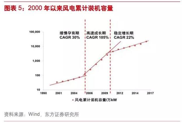 2006 至 2009 年期間風(fēng)電裝機容量連續(xù) 4 年實現(xiàn)翻倍增長,2006 到2010 年 CAGR 達到 105%,政策扶持是該階段行業(yè)發(fā)展的核心驅(qū)動力。