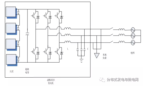 光儲(chǔ)虛擬同步機(jī)技術(shù)是采用同步電機(jī)的電機(jī)暫態(tài)方程在電力電子變流器的控制環(huán)節(jié)進(jìn)行控制,光儲(chǔ)虛擬同步機(jī)與常規(guī)的光伏相比,需要將傳統(tǒng)逆變器控制升級(jí),并增加儲(chǔ)能單元。使光伏儲(chǔ)能成為具有同步機(jī)并網(wǎng)的慣性、有功調(diào)頻、無(wú)功調(diào)壓、阻尼特征等特征的新型技術(shù)。