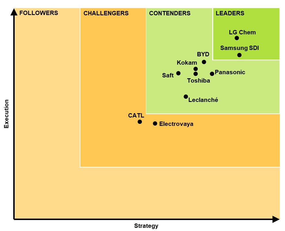 Navigant Research研究分析師Ian McClenny表示:“通過優(yōu)異的產(chǎn)品開發(fā)和與項(xiàng)目開發(fā)商、公用事業(yè)公司、金融家/投資者以及系統(tǒng)組件供應(yīng)商的強(qiáng)大合作關(guān)系,全球鋰離子電池市場(chǎng)的領(lǐng)導(dǎo)者顯然已與其他競(jìng)爭(zhēng)對(duì)手中脫穎而出。我們相信,這些市場(chǎng)領(lǐng)導(dǎo)者將在未來幾年中率先推出新一代鋰離子電池?!?