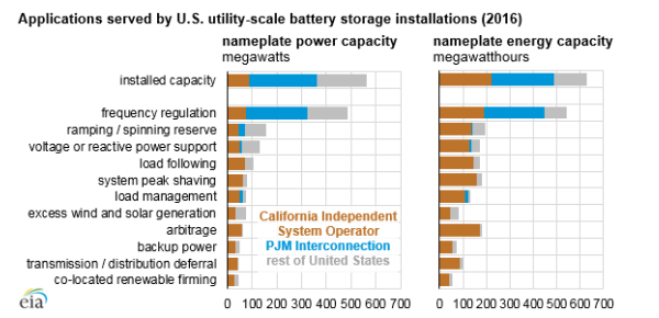 2016年度美國公用事業(yè)規(guī)模電池儲能部署應用情況