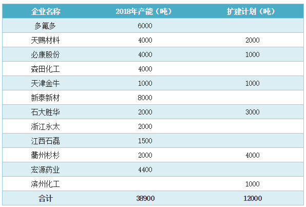 表1:中國六氟磷酸鋰產(chǎn)能統(tǒng)計