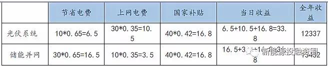 目前用戶的光伏系統(tǒng)的自發(fā)自用部分都相對較低,有的還不到30%,而光伏+儲能的結(jié)合會大大提高自發(fā)自用比率,從而提高用戶的收益。對比光伏系統(tǒng)與光伏+儲能系統(tǒng)的收益情況,以常見的10KW戶用系統(tǒng)為例,平均每天發(fā)電40度,假設(shè)用戶白天自用電為10度,其余30度買給電網(wǎng),(自用率10/40=25%)加裝儲能設(shè)備后,10度自用,20度電存入蓄電池晚上使用(自用率10+20/40=75%),以廣東地區(qū)電價(jià)為例,自用電價(jià)0.65元,上網(wǎng)電價(jià)0.35元。