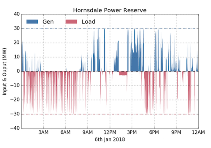 圖2霍恩斯代爾電池儲能系統(tǒng)在2018年1月6日的電能的生產(chǎn)和消耗