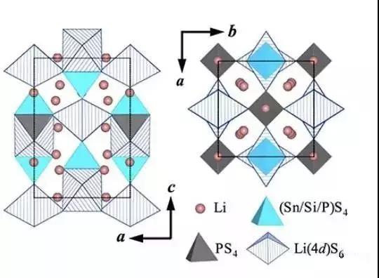 在最近發(fā)布的一篇論文中,研究人員保留了相同的LGPS框架結(jié)構(gòu),對(duì)錫、硅及其他成分的原子的速率及位置分布進(jìn)行了精密調(diào)整。其研究成果LSSPS材料(成分:Li10.35[Sn0.27Si1.08]P1.65S12 (Li3.45[Sn0.09Si0.36]P0.55S4))在室溫下的鋰離子導(dǎo)電性為1.1 x 10-2 S cm-1,幾乎接近最初的LGPS結(jié)構(gòu)的性能。