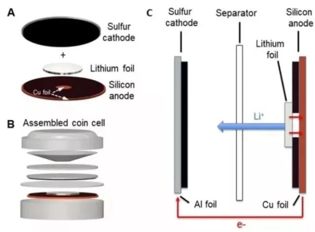 研究人員采用了納米硅結(jié)構(gòu)、導(dǎo)電劑(conductive additives)及粘合劑(binders)等方法,最終解決了上述問題,為燃料電池制備了硫陰極及硅陽極。