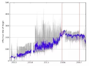 2016年儲能協(xié)會發(fā)現(xiàn)了現(xiàn)有信號和估值算法存在不一致的地方。修改后效益因子曲線降低了RegD估值,原因是其運行方向與系統(tǒng)所需相反,但是信號系統(tǒng)調(diào)整后RegD的方向不會與系統(tǒng)需求相反了。儲能協(xié)會指責(zé)PJM因為其系統(tǒng)缺陷降低了估值系統(tǒng),隨后系統(tǒng)缺陷修復(fù)后依然保持較低估值。