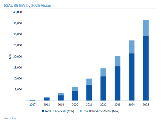 在美國儲能協(xié)會今年4月份舉辦的第27屆儲能協(xié)會年會暨展會上,執(zhí)行總監(jiān)Matt Roberts先生指出:“到2025年,美國儲能安裝量將達到35GW。電氣化會促使整個電網(wǎng)進行根本性的改革。成本下降、市場需求、監(jiān)管改革以及對儲能多種價值日益增長的認知都將會是促進儲能發(fā)展的因素?!?
