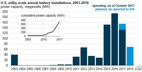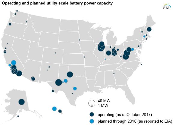 美國能源信息署(EIA)發(fā)布的2016年“年度發(fā)電機報告”中涵蓋了有關(guān)電池容量,充放電速率,存儲技術(shù)類型,無功功率額定值,存儲技術(shù)類型和預期使用情況等儲能情況的詳細信息。