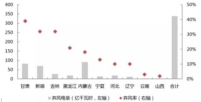 圖3:2015年全國(guó)風(fēng)電限制出力(停機(jī))情況