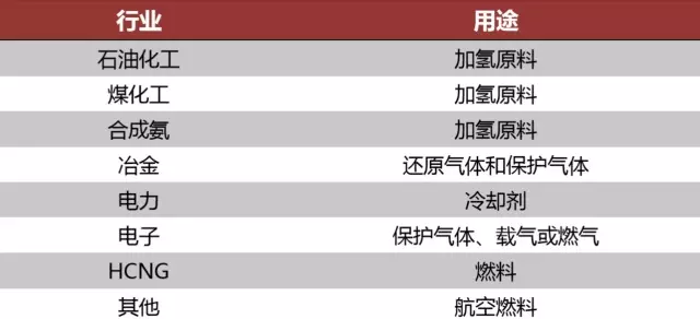 表2:氫氣的傳統(tǒng)應(yīng)用領(lǐng)域