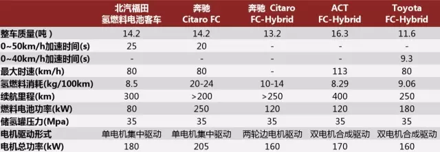 表3: 國(guó)內(nèi)外燃料電池客車性能對(duì)比
