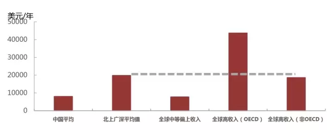 圖13:中國(guó)東部及東南部一線城市人均GDP已達(dá)到高收入國(guó)家水平