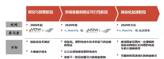 為推動(dòng)氫能發(fā)展項(xiàng)目的實(shí)施,NOW啟動(dòng)了NIP計(jì)劃(National Hydrogen and Fuel Cell Technology Innovation Program)。通過NIP計(jì)劃,共募集14億歐元的專項(xiàng)資金用于2007年至2016年的氫能項(xiàng)目開發(fā)。募集資金中的7億歐元由德國(guó)政府出資,剩余資金則按項(xiàng)目合作制度由產(chǎn)業(yè)提供。除此而外,由Air Liquide,Daimler,Linde,OMV,Shell 和 Total六家氫能產(chǎn)業(yè)的龍頭企業(yè)結(jié)成 了H2 Mobility 聯(lián)盟,以社會(huì)產(chǎn)業(yè)資本的身份通NOW一同支持德國(guó)氫能產(chǎn)業(yè)發(fā)展。
