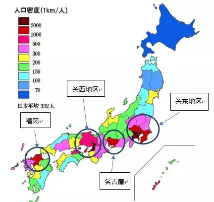 圖24:日本的人口集中在,關(guān)東、名古屋、關(guān)西以及福岡地區(qū)
