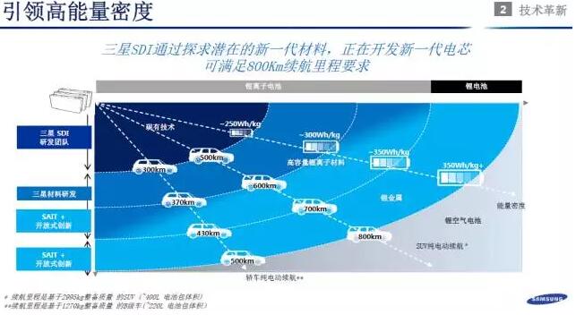 三星SDI株式會社副社長鄭世雄介紹,三星SDI動力電池能量密度目前為250wh/kg,并預(yù)計在2023年達到350wh/kg的目標,屆時,其可以實現(xiàn)電動汽車續(xù)航里程達800km。