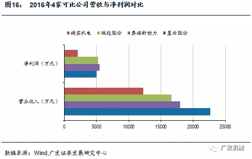 四家行業(yè)內(nèi)可比公司從收入上看,星云股份2016年營收2.27億元,處于行業(yè)龍頭地位, 另外三家公司緊隨其后。從實現(xiàn)凈利潤來看,泰坦新動力2016年實現(xiàn)凈利潤5465萬元,利潤規(guī)模最大,這主要得益于泰坦高毛利的半自動化和全自動化檢測產(chǎn)品。從盈利水平來看,泰坦和瑞能凈利潤率都在30%以上,顯示了行業(yè)較高的技術(shù)壁壘和產(chǎn)品附加值。