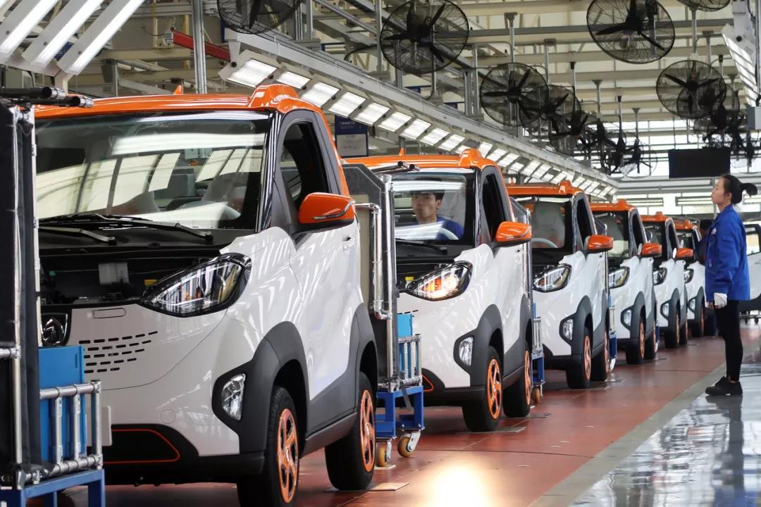 2017年,上汽通用在廣西壯族自治區(qū)柳州市一家裝配廠內(nèi)生產(chǎn)寶駿E100全電動電瓶車。圖自路透社