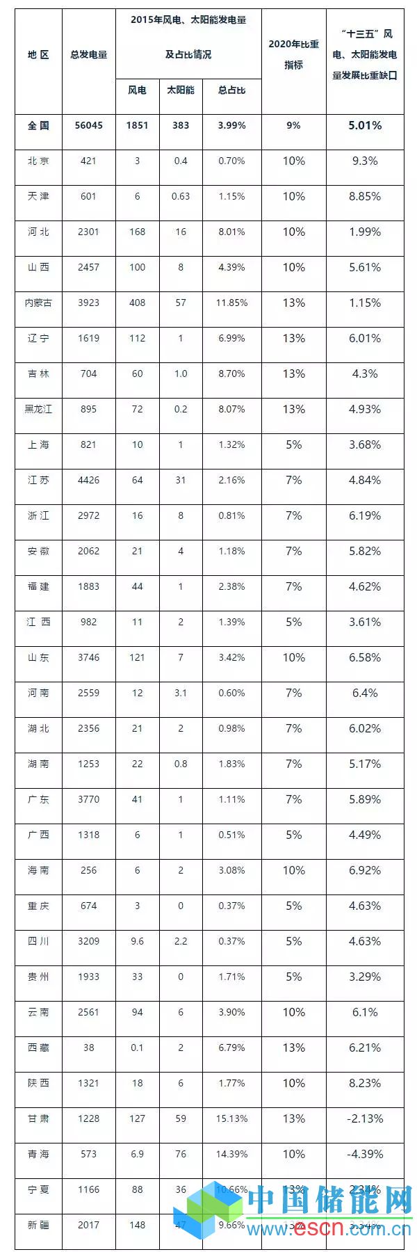 規(guī)定了全國(guó)不同省份2020年全社會(huì)用電量中的非水電可再生能源電量比重指標(biāo)(表1)
