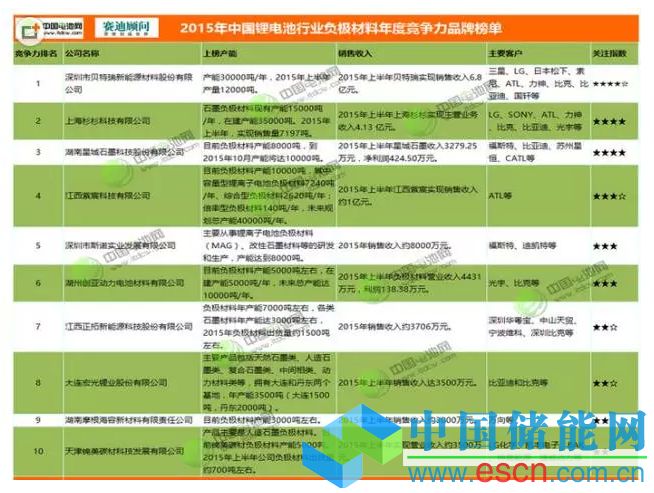 企業(yè)簡介:貝特瑞為中國寶安全資子公司,旗下?lián)碛须u西貝特瑞、雞西長源礦業(yè)、山西貝特瑞、天津貝特瑞、惠州貝特瑞等子公司。主要客戶涵蓋三星、LG、日本松下、索尼、ATL、力神、比克、比亞迪、國軒等。負(fù)極材料產(chǎn)能30000噸/年。2015年上半年產(chǎn)量12000噸,實現(xiàn)銷售收入6.8億元,同比增長10.62%。