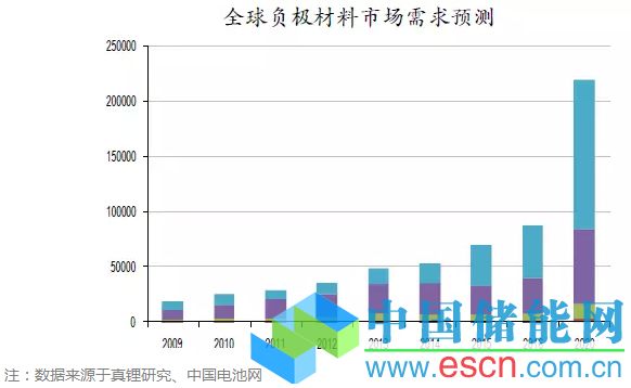 硅合金和鈦酸鋰等負(fù)極新材料有望大幅提高產(chǎn)品性能。隨著鋰電池交通工具以及儲能領(lǐng)域的快速增長,由于石墨類負(fù)極的高性價比,未來2~3年石墨類負(fù)極材料仍會作為主流,我們預(yù)計產(chǎn)量將保持年20%左右的增長。天然石墨主要用在數(shù)碼產(chǎn)品及筆記本電腦上,人造石墨多用于交通工具領(lǐng)域,其增長速度會高于負(fù)極材料的增長速度。而天然石墨的增長會低于負(fù)極材料的增長速度。從技術(shù)來講,石墨負(fù)極材料的性能逐漸趨于理論值,如石墨的克容量為372mAh/g,目前部分廠家產(chǎn)品可以達(dá)到365mAh/g,由于生產(chǎn)工藝和固有缺陷,這已經(jīng)基本達(dá)到極限值。