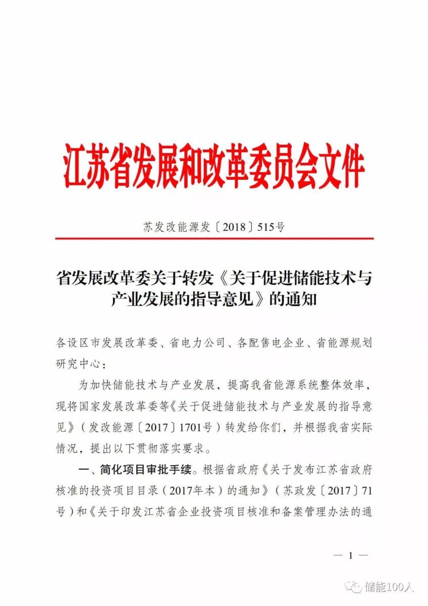 江蘇省發(fā)改委本月初發(fā)布了《關(guān)于轉(zhuǎn)發(fā)<關(guān)于促進(jìn)儲(chǔ)能技術(shù)與產(chǎn)業(yè)發(fā)展的指導(dǎo)意見>的通知》(以下簡(jiǎn)稱《通知》)。除要求加強(qiáng)貫徹去年10月五部委發(fā)布的儲(chǔ)能發(fā)展指導(dǎo)意見外,還特地提出“簡(jiǎn)化項(xiàng)目審批手續(xù)、加強(qiáng)規(guī)劃統(tǒng)籌發(fā)展和分級(jí)分類協(xié)調(diào)管理”等三大具體落實(shí)要求。