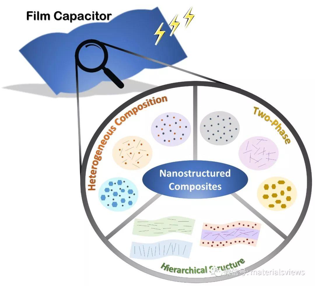 近日,美國賓夕法尼亞州立大學材料科學與工程系QingWang教授課題組與西安交通大學電力設(shè)備電氣絕緣國家重點實驗室彭宗仁教授課題組合作,系統(tǒng)地評述了鐵電聚合物基納米復合電介質(zhì)在高能量密度電容儲能領(lǐng)域的最新研究進展并對該領(lǐng)域未來的發(fā)展趨勢進行了展望。文章系統(tǒng)化地介紹了具有零維、一維和二維納米結(jié)構(gòu)填料,表面改性納米填料,定向和分層結(jié)構(gòu)納米填料以及多種納米填料共同摻雜的鐵電聚合物基納米電介質(zhì)的制備方法,對電容儲能薄膜中不同納米結(jié)構(gòu)對材料的介電常數(shù)與損耗、擊穿強度、儲能密度與效率等性能的綜合影響進行了總結(jié)、分析與討論。