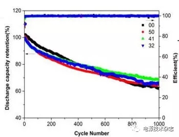 在進(jìn)一步研究中,Tuan等發(fā)現(xiàn)在溶膠電解液中加入微量Pb2+可以進(jìn)一步提高電池性能,并且發(fā)現(xiàn)二氧化硅和Pb2+都有作為電腐蝕抑制劑的作用。11如圖6所示,在溶膠電解液中加入Pb2+可以進(jìn)一步降低浮充電流并且提高循環(huán)性。而且由實(shí)驗(yàn)可知,5%的硅溶膠加入微量Pb2+后得到的循環(huán)性能最為優(yōu)秀,達(dá)到了74.4%的容量保持率,而對(duì)照組僅為59%。