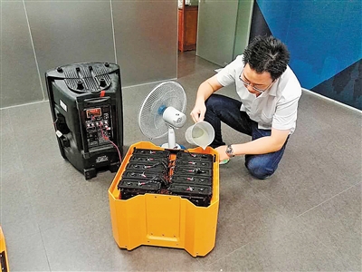 海能動力的鹽水電池可以帶動音箱和風扇。