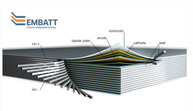 研究人員將所謂的雙極性電極一個一個堆疊起來,如同將一張張紙疊起來一樣,電極之間用薄薄的電解液分開,里面還有一種材料防止電荷短路。然后科學(xué)家將疊起來的薄片封裝,規(guī)格約為10平方英尺(1平方米),它的上部與下部與汽車電力系統(tǒng)連接。