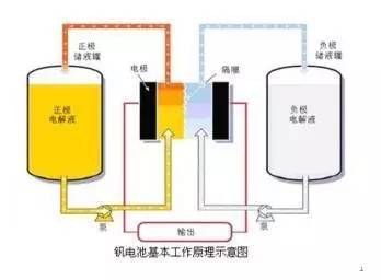 液流電池是一種新型的大型電化學(xué)儲能裝置,是利用正負(fù)極電解液分開,各自循環(huán)的一種高性能蓄電池,是目前的一種新能源產(chǎn)品。液流電池的電解液置于電堆外部,利用循環(huán)泵使電解液流經(jīng)電堆,二者發(fā)生電化學(xué)反應(yīng),從而實現(xiàn)化學(xué)能與電能的轉(zhuǎn)換以及電能的存儲與釋放。根據(jù)活性物質(zhì)的不同,液流電池可分為全釩、鋅/溴、多硫化鈉/溴、鐵/鉻等多種類型。