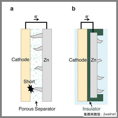 相較于傳統(tǒng)電池采用鋅電極與鎳電極彼此相對(duì)的設(shè)計(jì),研究人員們改用一層塑膠絕緣層來(lái)分隔彼此,并在鏟電極邊緣包覆碳絕緣層。
