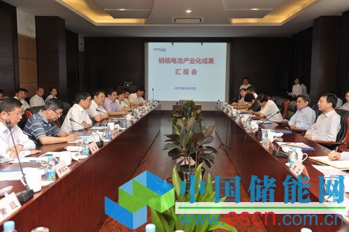 與會人員參觀了鈉硫儲能公司展示廳、產(chǎn)品制備現(xiàn)場,并聽取了鈉硫公司總經(jīng)理茅雁對于產(chǎn)業(yè)化階段性成果的專題工作匯報。上海電氣鈉硫儲能技術(shù)有限公司自2012年1月正式運作以來,經(jīng)過一年半的努力,在鈉硫電池產(chǎn)業(yè)化進程中成果顯著。注冊資金4億元已全部到位,團隊已達77人。單體電池性能提升,電池內(nèi)阻降低了3倍,額定功率特性達到120W@6.5h,提升了4倍,滿足實用化和安全性的要求,目前已完成第一代電池D120的產(chǎn)品化定型;具備一定自動化、連續(xù)化程度的中試線基本建成,自動干等靜壓、氣燒窯、自動注鈉和注硫設(shè)備已調(diào)試完成,全面貫通后預(yù)計產(chǎn)能為5MW/年;已完成第一代5kW模塊產(chǎn)品化結(jié)構(gòu)定型,并通過第三方型式試驗認可。公司在此期間新申請專利67項,其中發(fā)明專利35項,已授權(quán)18項,并確立了上海電力崇明智能電網(wǎng)綜合示范項目、硅酸鹽所IDEA項目、上海電氣中央研究院微網(wǎng)等項目。
