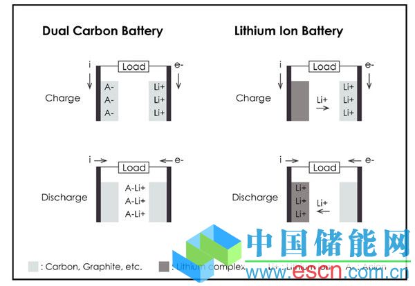 中國儲能網(wǎng)訊:近日,日本Power Japan Plus公司開發(fā)出陽極和陰極都是碳材料的雙碳性電池(Dual-carbon)技術(shù),稱這項技術(shù)生產(chǎn)的電池和鋰離子電池相比,在同等能量密度條件下,安全性更高,壽命更長。