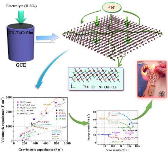 非原位氮摻雜Ti3C2柔性電極的儲能原理、電化學(xué)性能及其器件性能圖