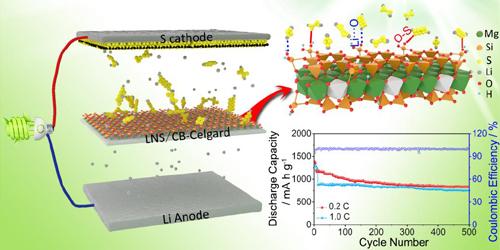 最近,中國科學院蘭州化學物理研究所研究員張俊平團隊首次報道了一種黏土礦物超親電解液鋰電池隔膜。鋰皂石含有豐富的O活性位點和Li+,還具有獨特的片層結構和較大比表面。鋰皂石首次被應用到鋰硫電池中,用于抑制聚硫化物穿梭,并提高隔膜的Li+電導率。