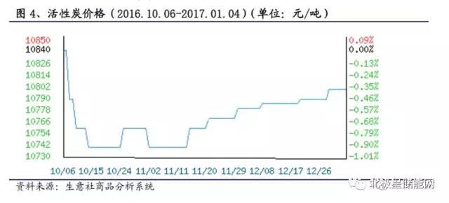 從圖4中可以看到,2016年下半年,活性炭價格先有一個明顯下跌,之后緩慢回升。此系列的上一篇報告中分析可以知道,近些年來鉛資源的價格大體呈先較為穩(wěn)定的狀態(tài),但在近半年價格有一定幅度的提升,具體走勢圖見圖5。