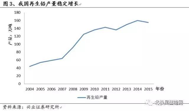 同時,鉛回收利用已經(jīng)是非常成熟的產(chǎn)業(yè),2014年我國再生鉛產(chǎn)量達到約160萬噸,同比增長6.7%,占鉛產(chǎn)量的38%。隨著鉛回收技術(shù)的進一步提升,目前鉛的回收率可以達到98%以上。