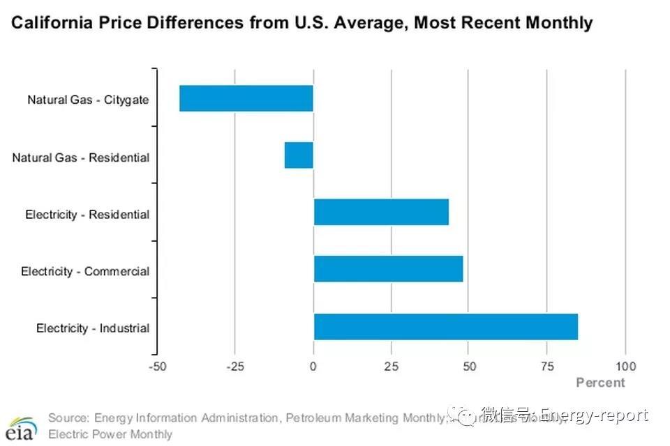 加州電力公司的價(jià)格差異與美國(guó)平均水平
