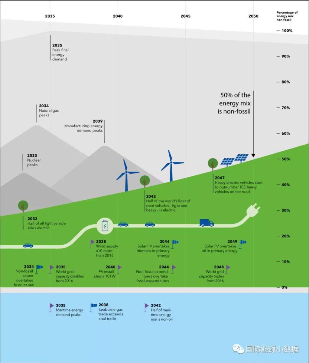 此外該報(bào)告還預(yù)測(cè)了全球能源轉(zhuǎn)型過程中的9個(gè)關(guān)鍵節(jié)點(diǎn):