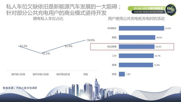 近半數(shù)的用戶(hù)沒(méi)有獨(dú)立充電樁,會(huì)更加依賴(lài)公共充電樁,在充電時(shí)他們會(huì)選擇休閑娛樂(lè)、購(gòu)物、附近等候、工作以及就餐等,令人意想不到的是,選擇附近等候的用戶(hù)竟然占比43.6%,針對(duì)這一部分用戶(hù)還有哪些可以提供的服務(wù),是新能源車(chē)企以及相關(guān)商戶(hù)值得思考的商機(jī)。