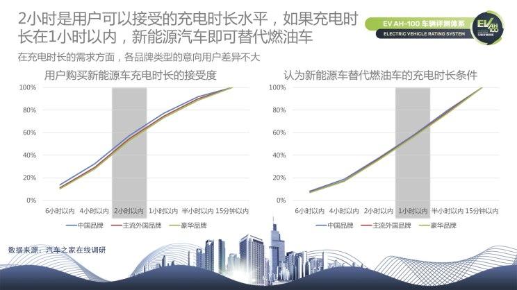 在充電時(shí)長(zhǎng)的需求方面,各品牌的意向用戶(hù)差別不大。大數(shù)據(jù)結(jié)果顯示2小時(shí)是用戶(hù)可以接受的充電時(shí)長(zhǎng)水平,如果充電時(shí)長(zhǎng)可以控制在1小時(shí)以?xún)?nèi),則新能源汽車(chē)有望達(dá)到替代燃油車(chē)的水平。不難理解,習(xí)慣于加油的便利性讓用戶(hù)對(duì)充電時(shí)間的要求更為嚴(yán)格,充電時(shí)間越短,新能源汽車(chē)就越容易代替燃油車(chē)。但為什么充電時(shí)間在2個(gè)小時(shí)內(nèi)用戶(hù)對(duì)新能源車(chē)的接受度會(huì)更高,用戶(hù)界定的標(biāo)準(zhǔn)是什么?我們會(huì)在詳細(xì)報(bào)告中給出答案。
