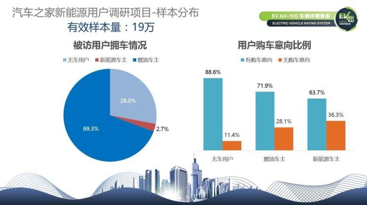 汽車(chē)之家在線(xiàn)調(diào)研平臺(tái)涵蓋超過(guò)6000萬(wàn)用戶(hù),真實(shí)車(chē)主數(shù)量超過(guò)百萬(wàn)。超大的樣本容量決定了新能源用戶(hù)調(diào)研項(xiàng)目結(jié)果的真實(shí)性與專(zhuān)業(yè)性,最終獲得有效樣本量19萬(wàn)人次,其中新能源車(chē)主占全部被訪(fǎng)問(wèn)用戶(hù)的2.7%。