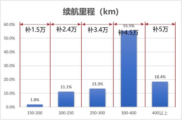 據(jù)中汽中心統(tǒng)計,在能耗水平方面,93%的純電動車都能滿足1倍補貼門檻,其中,40%產(chǎn)品達到1.1倍補貼門檻。在電池系統(tǒng)能量密度方面,有56%的產(chǎn)品可滿足1.1倍補貼門檻,即能量密度達到140Wh/kg以上。在續(xù)航里程方面,有75%的產(chǎn)品都達到了300公里以上,其中18.4%產(chǎn)品達到400公里以上。整體來看,大部分車型都能滿足較高補貼技術(shù)要求,處于高補貼區(qū)間。