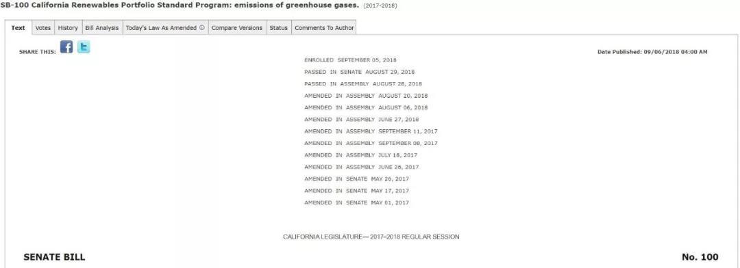 一項(xiàng)名為SB100的法案詳述了以上目標(biāo),通過逐步增加電力系統(tǒng)終端中清潔能源供電的比重,擺脫加州電力對(duì)化石燃料的依賴,減少碳排放。該法案提出,到2045年12月31日,供加州終端消費(fèi)者使用的零售電力和政府采購(gòu)電力必須100%來自可再生能源和零碳能源。加州此前曾制定過一份“2030年50%清潔電力”的計(jì)劃,SB100在此基礎(chǔ)上進(jìn)一步升級(jí):2026年12月31日之前實(shí)現(xiàn)50%可再生能源供電目標(biāo),2030年12月31日之前將上述比例提高到60%。為了實(shí)現(xiàn)上述循序漸進(jìn)的清潔供電目標(biāo),該法案規(guī)定了電力零售商和當(dāng)?shù)毓搽娏静少?gòu)合格可再生能源電力產(chǎn)品的最低采購(gòu)量。