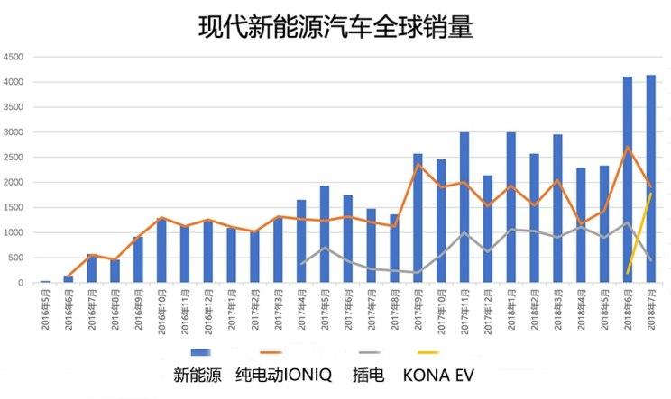 在實際的研發(fā)生產(chǎn)等資金投入后,現(xiàn)代汽車在新能源領域取得了不錯的成績,2018年7月現(xiàn)代汽車銷售新能源汽車4143臺,1-7月份共銷售21665臺。
