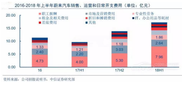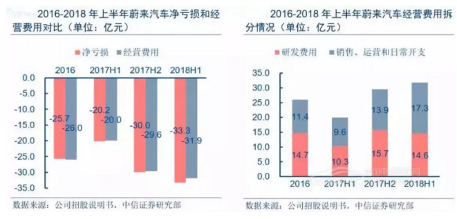 據(jù)此前蔚來招股書,從2016年至2018年6月30日的兩年半時(shí)間內(nèi),蔚來的總收入為4599萬元,而總營業(yè)費(fèi)用達(dá)到了107.42億元,凈虧損109.2億元。其中,2016年、2017年、2018年上半年的支出分別為26.03億元、49.54億元、31.86億元;凈虧損分別為25.73億元、50.21億元、33.26億元。截至6月30日,蔚來的現(xiàn)金及現(xiàn)金等價(jià)物不足45億元。