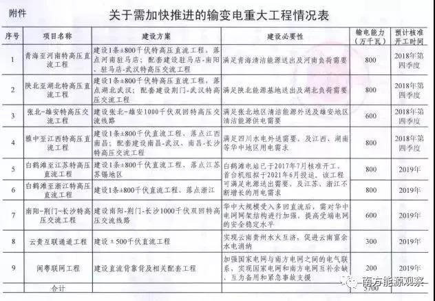 重點(diǎn)工程計(jì)劃主要項(xiàng)目涉及西北、西南清潔能源外送至江蘇、浙江等負(fù)荷中心,核準(zhǔn)開工時(shí)間集中在年內(nèi)及2019年,可謂時(shí)間緊迫。