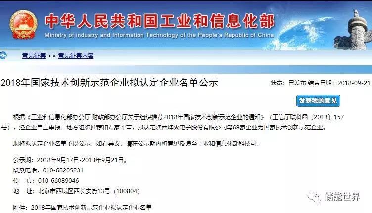 中國儲能網(wǎng)訊:17日,工信部網(wǎng)站發(fā)布消息,根據(jù)《工業(yè)和信息化部辦公廳 財政部辦公廳關(guān)于組織推薦2018年國家技術(shù)創(chuàng)新示范企業(yè)的通知》,經(jīng)企業(yè)自主申報、地方組織推薦和專家評審,擬認(rèn)定甕福(集團)有限責(zé)任公司、湖南杉杉能源科技股份有限公司、天齊鋰業(yè)股份有限公司等68家企業(yè)為國家技術(shù)創(chuàng)新示范企業(yè)。